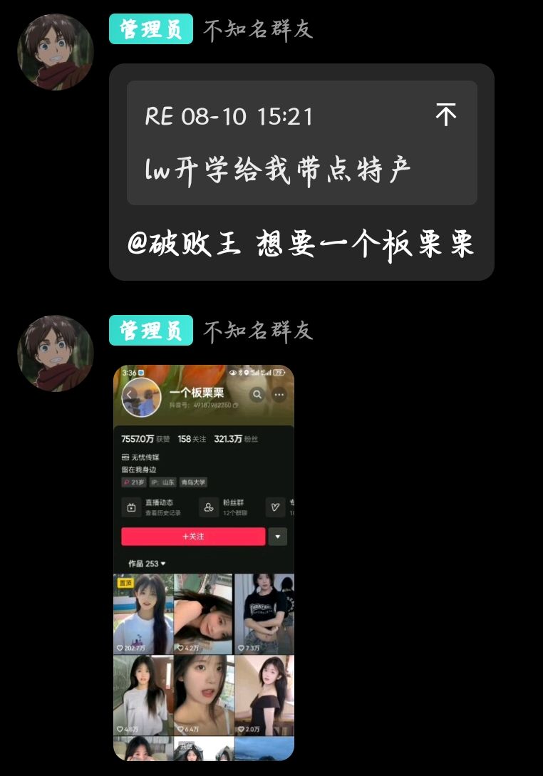 lw是集训队唯一的山东人。某天,他准备从家来到学校,群友都向他索要特产。lyt想要一颗板栗栗,lw不知道是什么,就给他带了一堆板栗。
