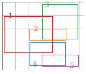 单元格(r, c)被第 i 朵云覆盖,当且仅当他满足Ui <= r <= Di 且 Li <= c <= Ri 。对于 k = 1, 2, ......, n,请回答以下问题: