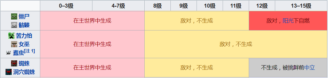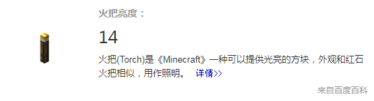 怪物生成规则、火把亮度、照亮范围如图,右下角图T表示火把数值表示亮度,同一个方块被多个火把照亮时取最大值。