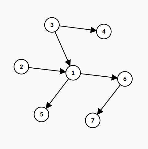 第一行先是一个正整数n (n ≤ 500)代表图中顶点数,紧接着是一个空格以及正整数m(m ≤ 10000)代表边数,接下来m行每一行两个正整数u,v用空格隔开代表u到v有一条有向边,(u, v ≤ n),输入保证没有重边以及自环,上图为样例解释。