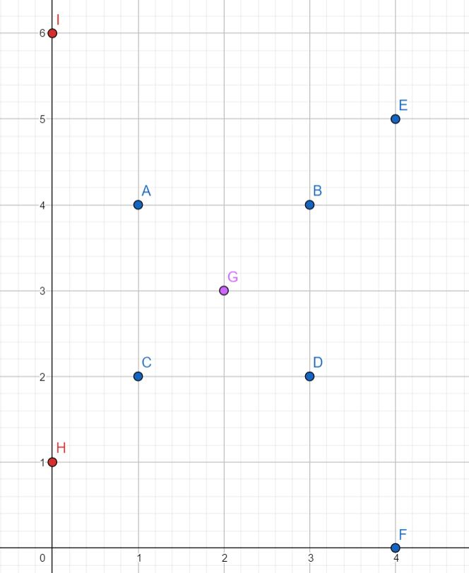 我们选取G点作为中心点(此点并不存在星星),此时AD,BC对称,我们添加HI点分别与EF点对称,此时需要添加的点数为2(中心点不需要添加,只是位置概念)